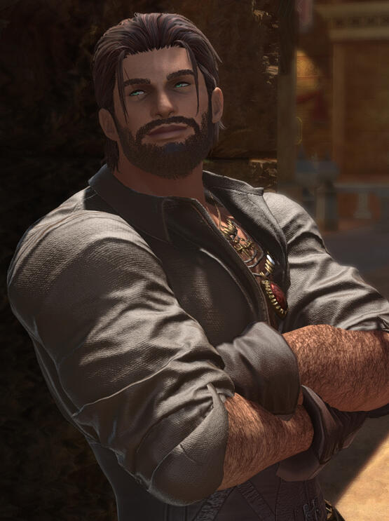 Cassius Thorne cuts the figure of a man forged by deckwork, the coliseum sands, and bad decisions that somehow worked out. Broad shouldered and thick limbed like any Highlander worth the name, his strength shows in the easy way he moves rather than brute display. His hair, mostly brown and sun-streaked auburn, often catches copper highlights after too much time under open skies or the merciless glare of the Ul’dahn sun. A thin, pale scar cuts diagonally across one cheek, the souvenir of a bout that should have taken his eye and instead taught him when to smile and when to strike. He keeps his beard neat and his hair tied back when he remembers, though a rotating collection of well worn hats usually bears the responsibility of looking presentable. Across his back, inked deep and dark, lies the mark of his former bondage: a gladiator’s tattoo earned in the sands, equal parts brand and badge of survival, a reminder of the life he clawed his way out of and refuses to return to.Personality