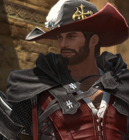 Cassius Thorne cuts the figure of a man forged by deckwork, the coliseum sands, and bad decisions that somehow worked out. Broad shouldered and thick limbed like any Highlander worth the name, his strength shows in the easy way he moves rather than brute display. His hair, mostly brown and sun-streaked auburn, often catches copper highlights after too much time under open skies or the merciless glare of the Ul’dahn sun. A thin, pale scar cuts diagonally across one cheek, the souvenir of a bout that should have taken his eye and instead taught him when to smile and when to strike. He keeps his beard neat and his hair tied back when he remembers, though a rotating collection of well worn hats usually bears the responsibility of looking presentable. Across his back, inked deep and dark, lies the mark of his former bondage: a gladiator’s tattoo earned in the sands, equal parts brand and badge of survival, a reminder of the life he clawed his way out of and refuses to return to.Personality